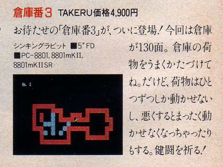 | 1982年12月 | 倉庫番 | PC-8001mk2 | Tape | (有)シンキングラビット | |